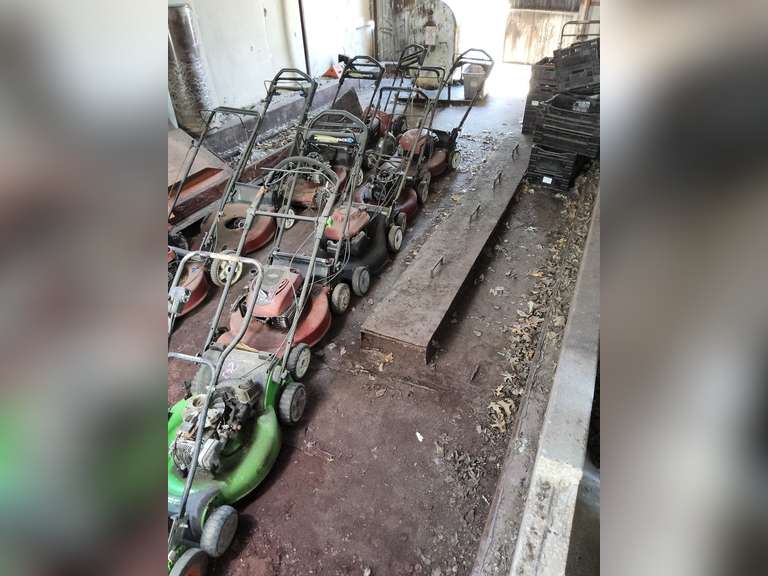 LOT 263 - Group misc: parts mowers, metal, plastic crates, other SEE PICS