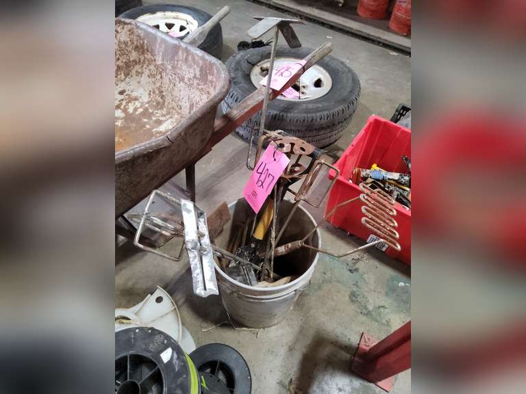 LOT 427 - Bucket of concrete mixing tools & other SEE PICS