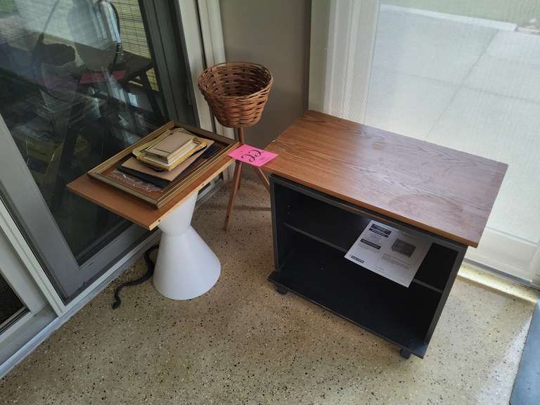 LOT 22 - Group: tv cart, planters & other