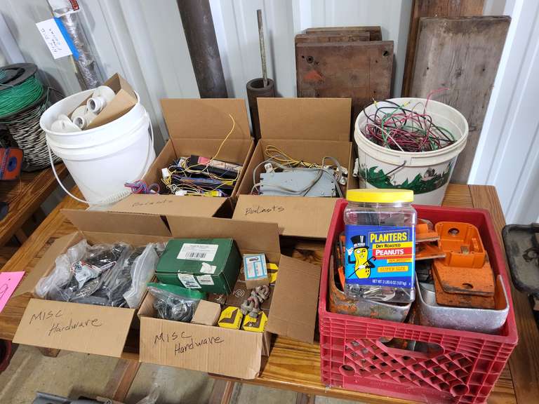 LOT 15 - Group misc: foot pedals, hardware, light fixtures & other SEE PICS (table NOT included)