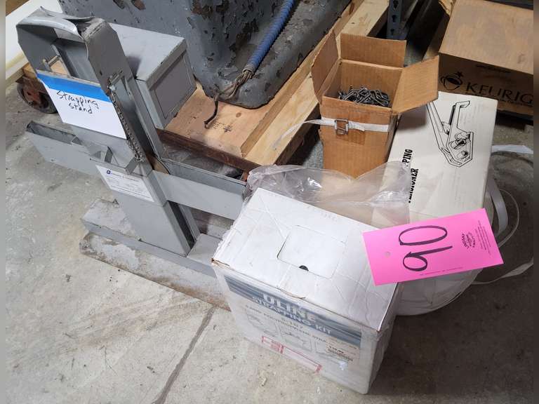 LOT 90 - Group of strapping items: strap, strap tool, strap stand & other SEE PICS