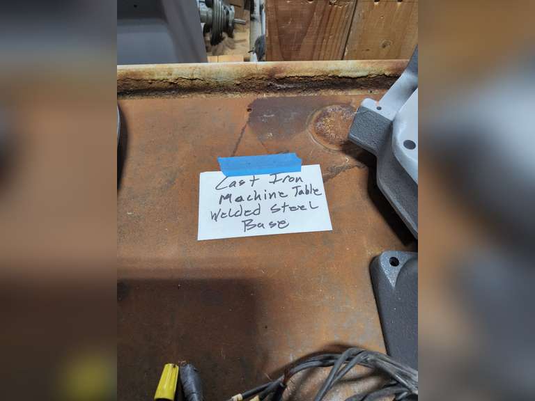 LOT 101 - Cast iron machine table welded base (contents ontop NOT included) approx 40.5" x 29.5" x 37"
