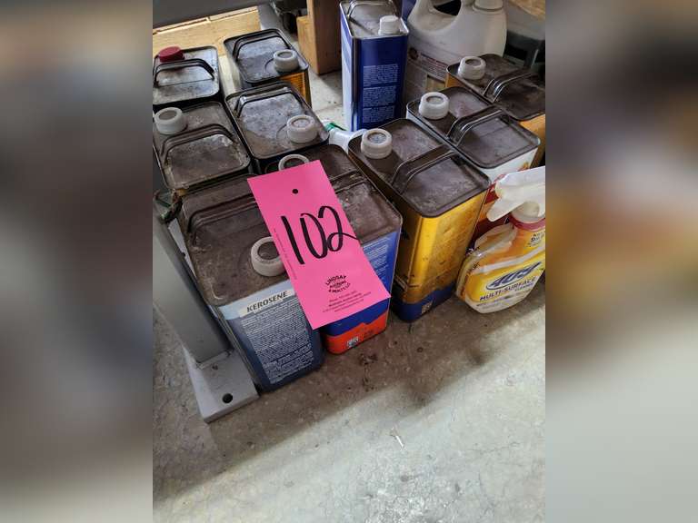LOT 102 - Group of various cleaners, kerosene & other SEE PICS (partial cans