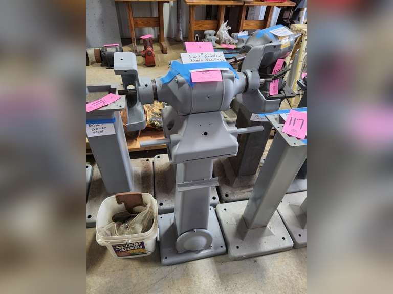 LOT 114 - 6" or 7" grinder (needs bearings) with stand (may not be complete)
