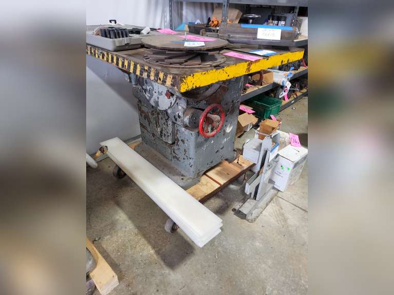 LOT 124 - Oliver 270 -- 14" table saw (untested) on dolly (contents on top NOT included)
