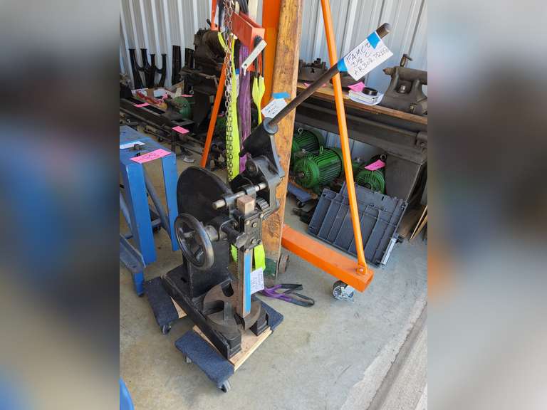 LOT 182 - Famco 3.5C arbor press compound ratchenting with stand on 2 dollies